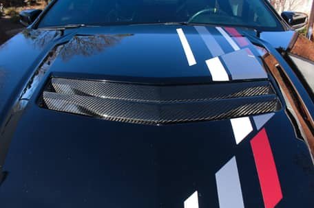 - Carbon fiber front splitter and hood vent