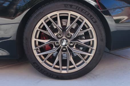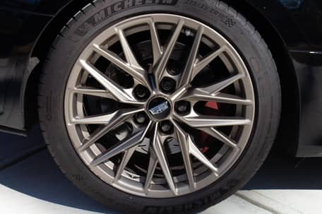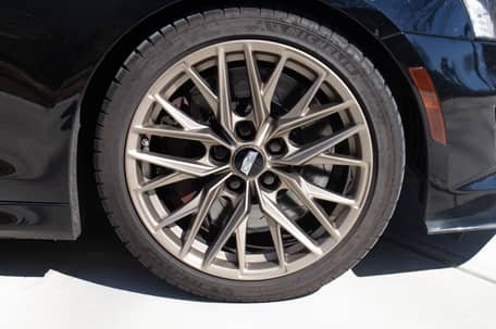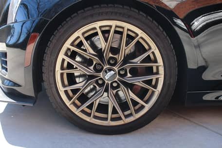- 19-inch Tech Bronze Cadillac Blackwing wheels with GM black gloss lug nuts