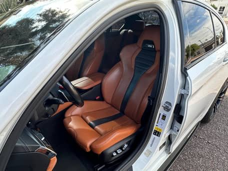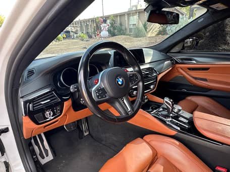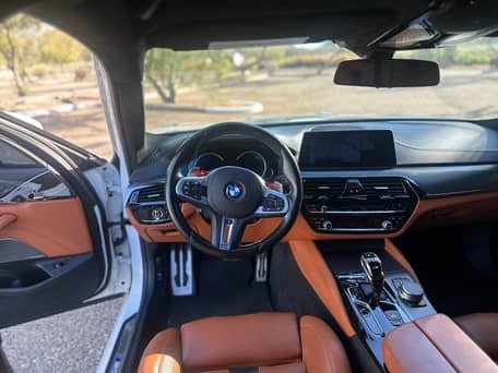 THIS… is a 2018 BMW M5, finished in Alpine White with an Aragon Brown interior.