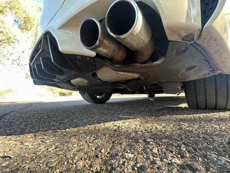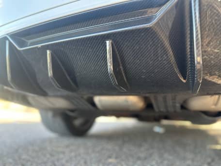 - Carbon fiber front lip, kidney grilles, side vent trim, and rear diffuser
