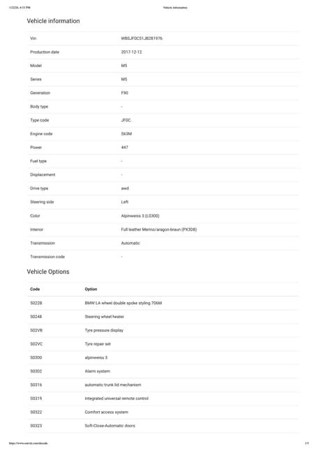 - The attached Carfax history report indicates that this M5 was reacquired by the manufacturer in June 2018 due to a paint concern. This M5 is offered with a Manufacturer Buyback title from Florida.