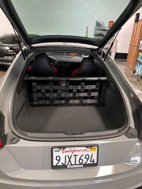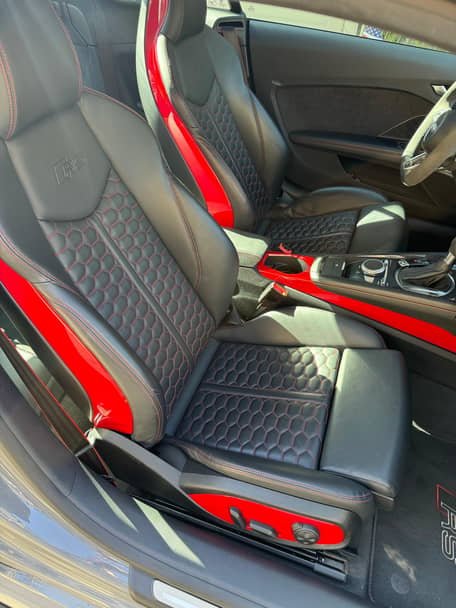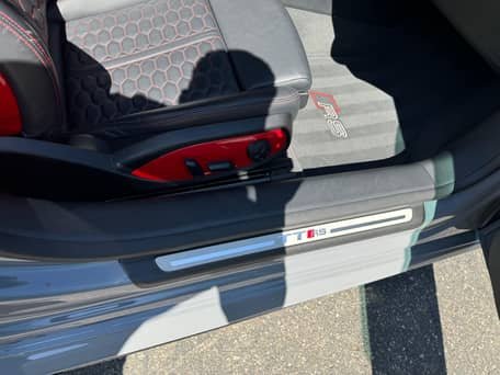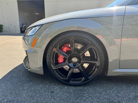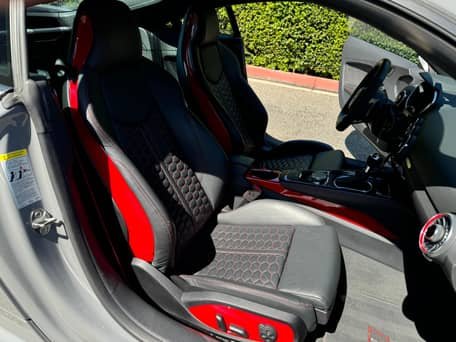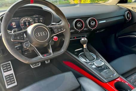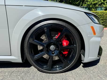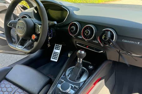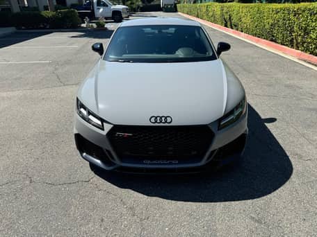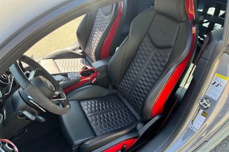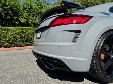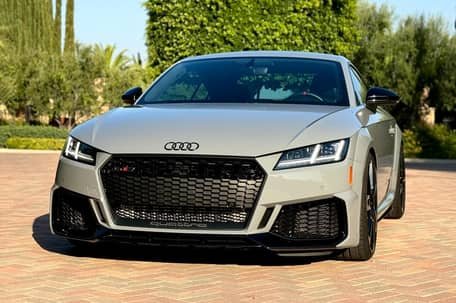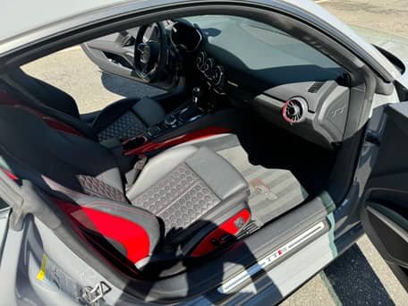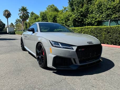 THIS… is a 2019 Audi TT RS, finished in Nardo Grey with a Black and Express Red interior.