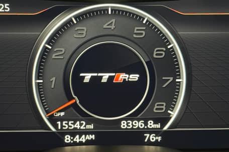 - The odometer on this TT RS currently displays approximately 15,800 miles.