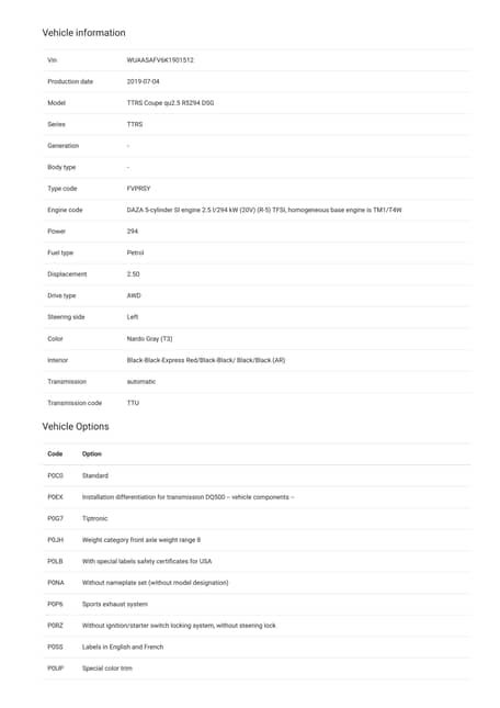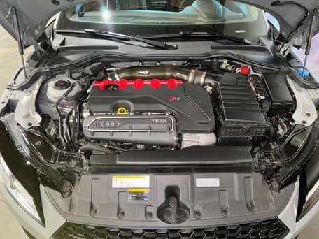 - Power comes from a 2.5-liter turbocharged inline-5, rated at 394 horsepower and 354 lb-ft of torque in stock form. Due to the modifications performed to this TT RS, it may produce more power, but a dyno sheet was not provided to confirm. Output is sent to all four wheels via a 7-speed dual-clutch automatic transmission and Audi’s Quattro all-wheel drive system.