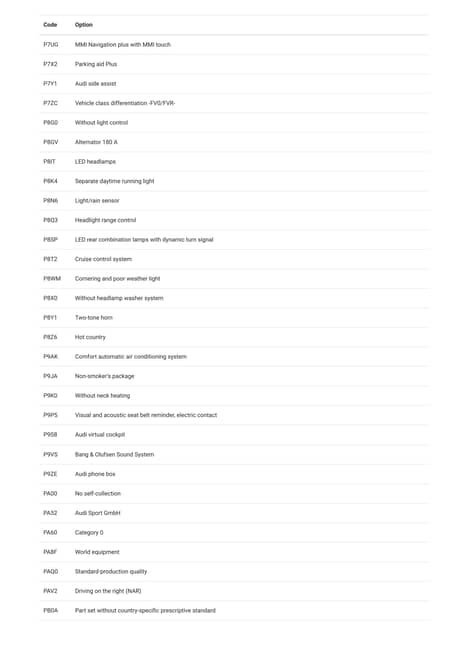 - Technology Package (MMI Navigation Plus, Audi Connect, Audi smartphone interface, Bang & Olufsen sound system)