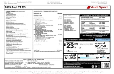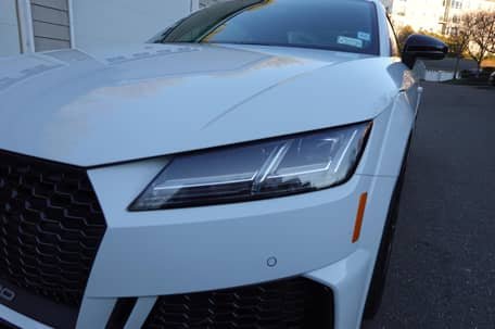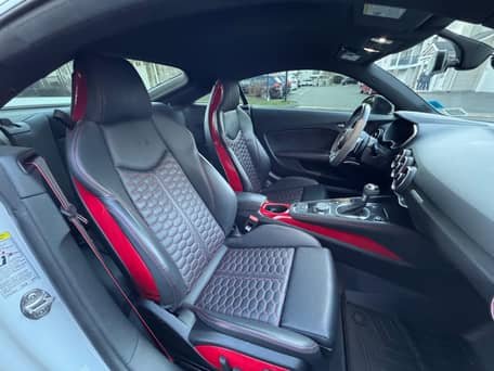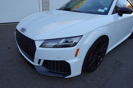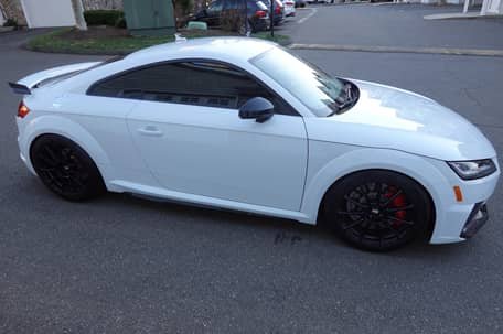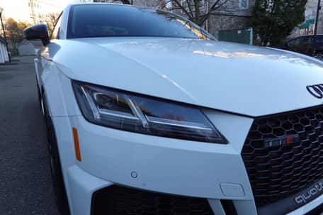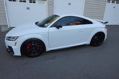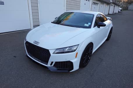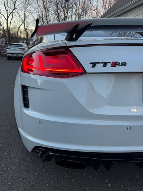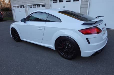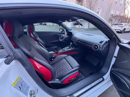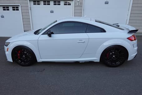 THIS… is a 2019 Audi TT RS, finished in Glacier White Metallic with a black interior.