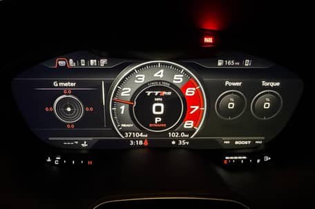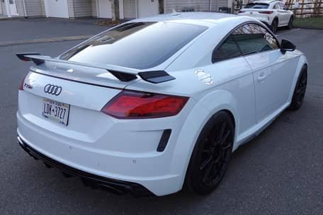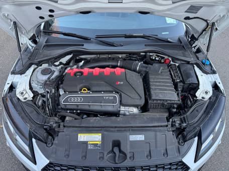 - Power comes from a 2.5-liter turbocharged inline-5, rated at 394 horsepower and 354 lb-ft of torque in stock form. Due to the modifications performed to this TT RS, it may produce more power, but a dyno sheet was not provided to confirm. Output is sent to all four wheels via a 7-speed dual-clutch automatic transmission and Audi’s Quattro permanent all-wheel drive system.