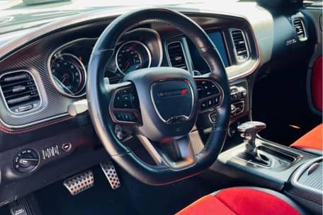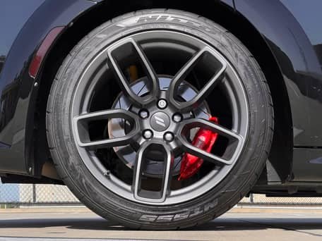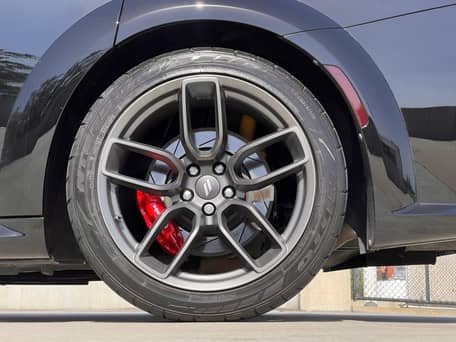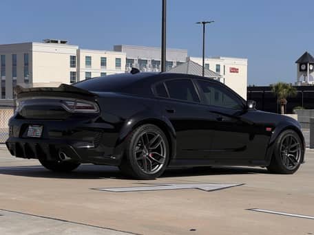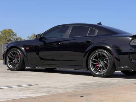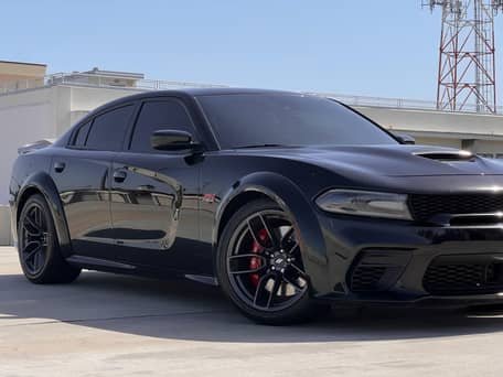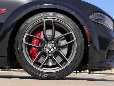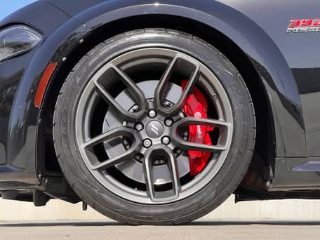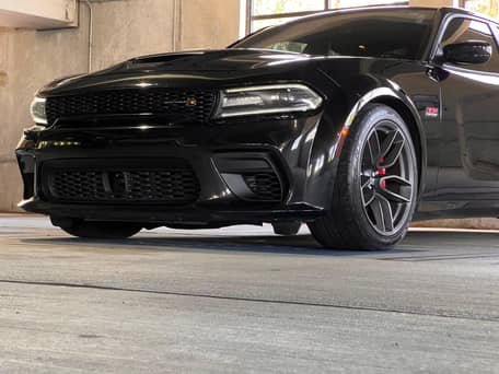 - Scat Pack Widebody (Widebody Package, Brembo front brake calipers, body-color fender flares, leather flat-bottom steering wheel, Widebody competition suspension, adaptive damping suspension, 20-inch “Devil’s Rim” wheels, and more)
