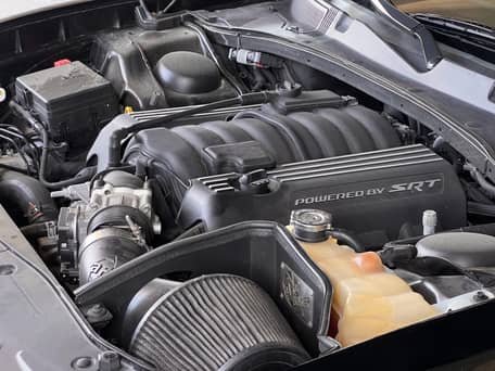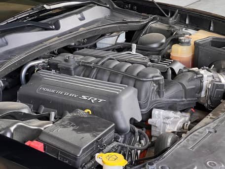 - Power comes from a 6.4-liter V8, rated at 485 horsepower and 475 lb-ft of torque. Output is sent to the rear wheels via an 8-speed automatic transmission.
