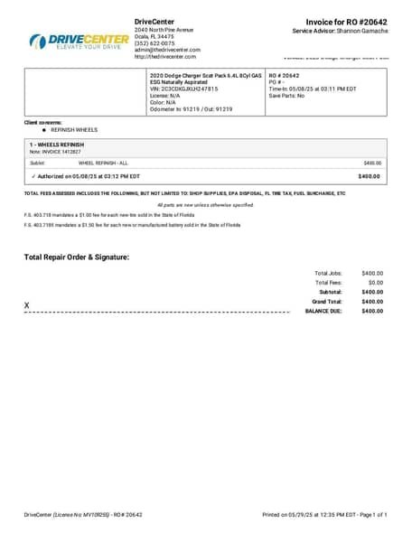 - May 2025 (91,219 miles): Wheels refinished, engine oil and filter changed, tires rotated