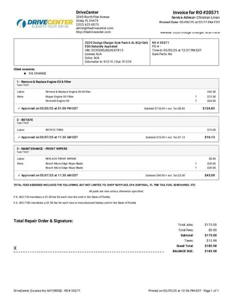The attached Carfax history report shows that the following services have been performed: