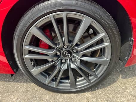 - The Q50 Red Sport 400 builds on the standard Q50 with more power, 19-inch alloy wheels, and adaptive dampers. Drive-by-wire power steering was optional, though this Q50 is equipped with rack-mounted electronic power steering.