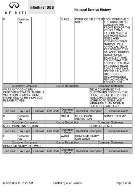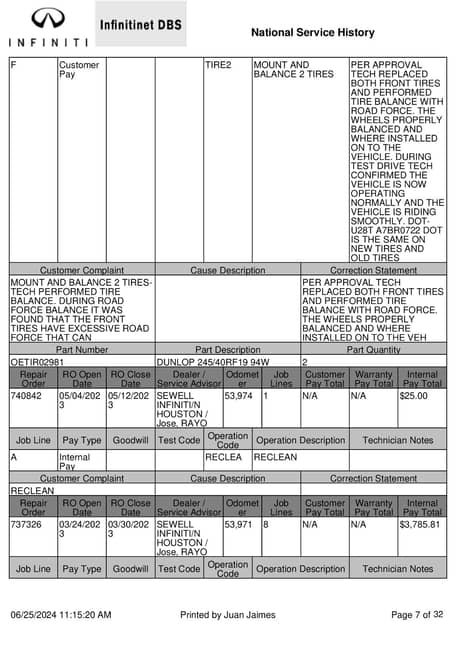- July 2023 (55,213 miles): Front tires replaced, AV unit software updated