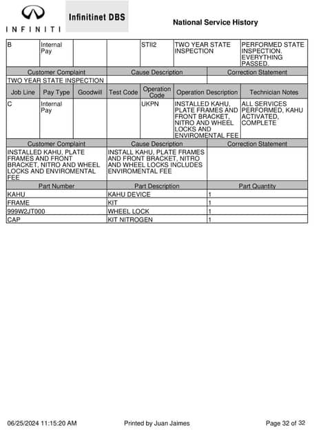 - The attached Carfax history report indicates no accidents or mileage discrepancies in this Q50’s past. It also shows registrations in Texas since new.