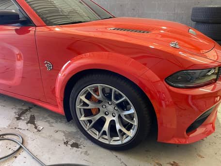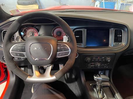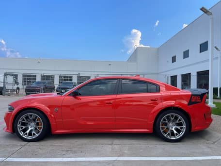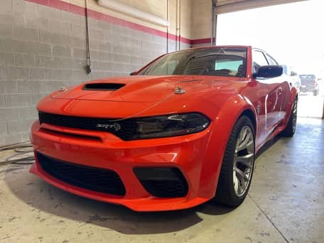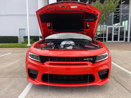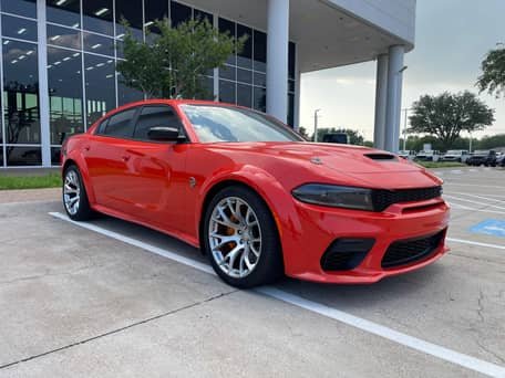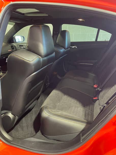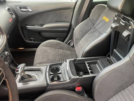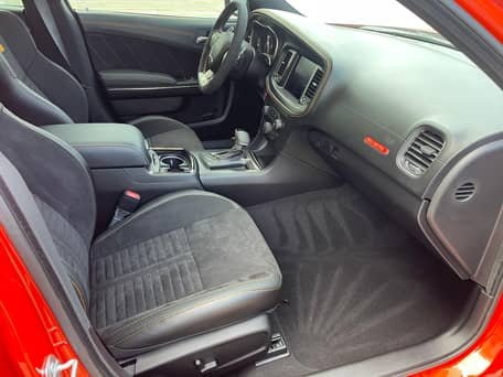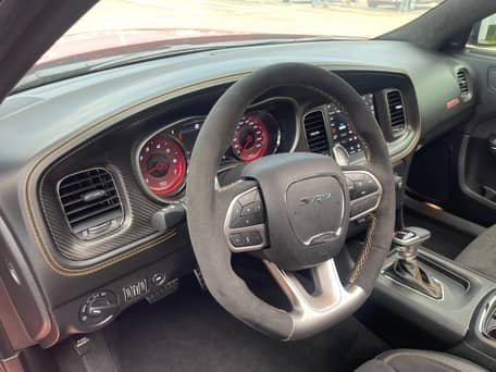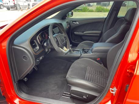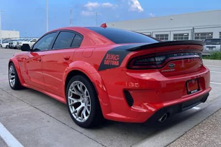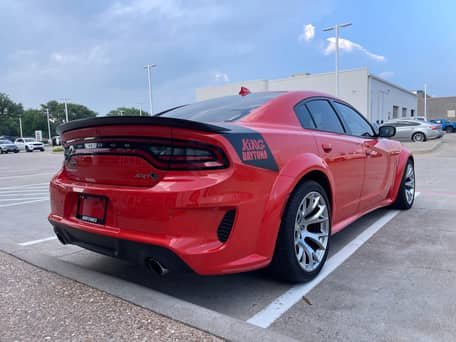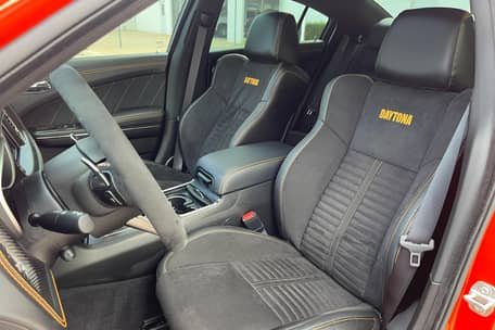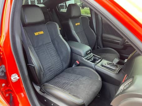 - King Daytona Special Edition Package (20-inch Warp-Speed satin carbon wheels, bright hood pins, King Daytona trunk stripe, black SRT spoiler, satin chrome exterior badges, orange brake calipers, leather/Alcantara seats with King Daytona logo, orange contrast stitching, SRT Alcantara steering wheel, suede door trim panel, suede headliner, King Daytona instrument panel, carbon fiber interior trim)