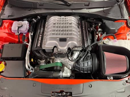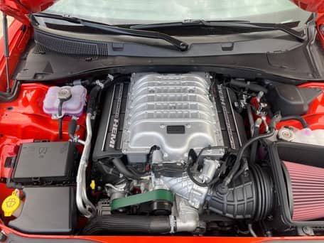 - Power comes from a 6.2-liter supercharged Hemi V8, rated at 807 horsepower and 707 lb-ft of torque. It spins the rear wheels via an 8-speed automatic transmission.